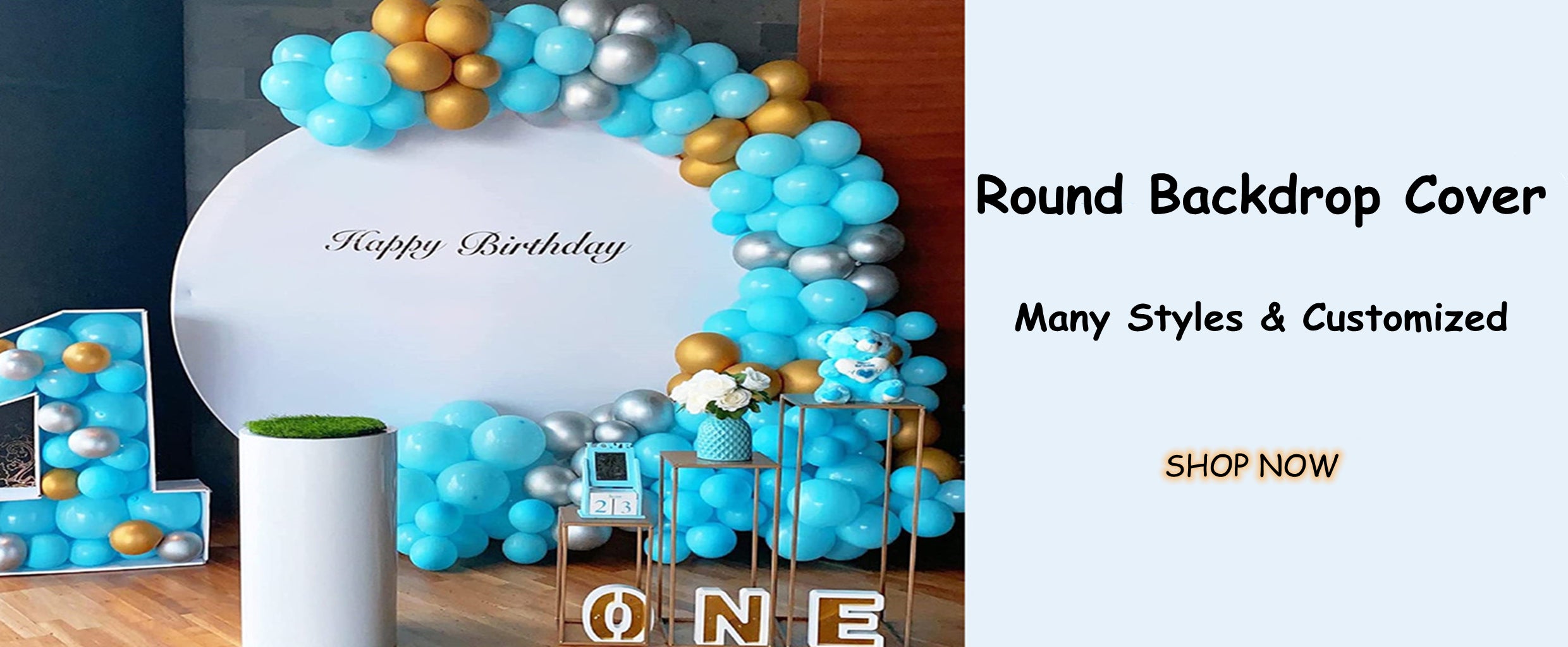 Custom Round Fabric Backdrop for Birthday Baby Shower Party